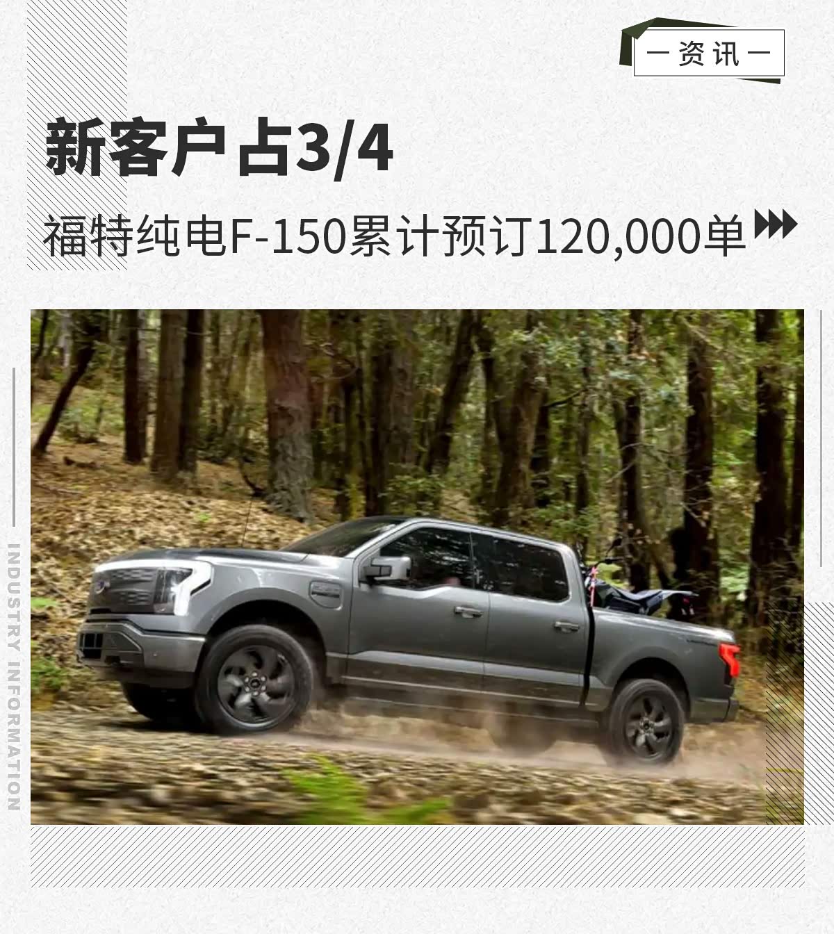 据了解,福特F-150 Lightning开启预定后的12小时内订单达20,000单,经过两个多月的时间该车订量达到120,000单。据悉,在美国市场的F-150 Lightning入门级车型零售价为39,974美金起,中配XLT车型零售价为52,974美金起(补贴前)。