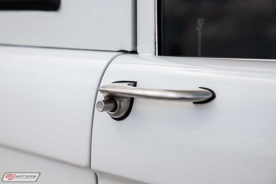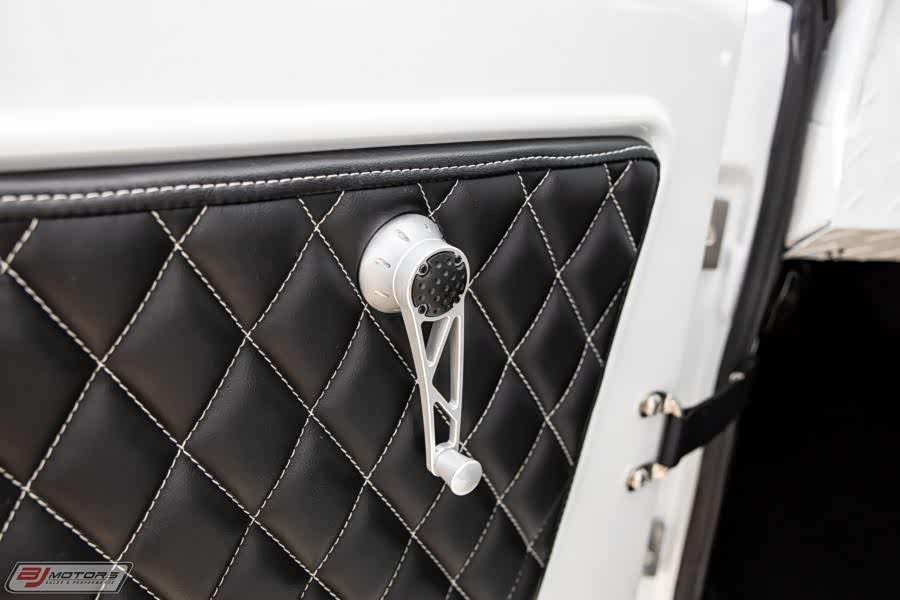 内饰部分也焕然一新,采用了一个极简的风格,保持了70年代老爷车的原始风格,使用了简洁的黑白对比色,黑色的真皮覆盖了车门饰板合座椅,并带有白色的菱形车缝线,车窗的升降机构保留了古老的手摇式。