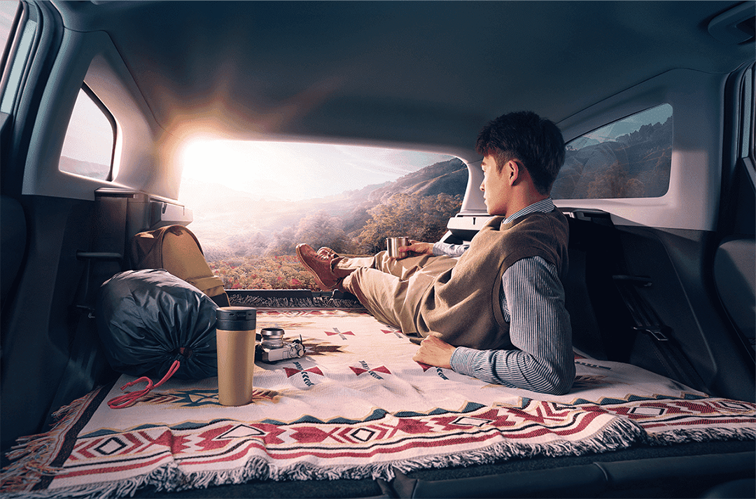 宽敞平坦的尾厢,拥有极强的装载能力;而那张联名款的0压床垫,仿佛时刻诱惑着你到车厢里睡上一觉。