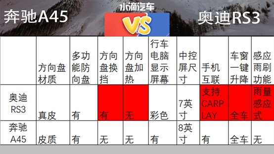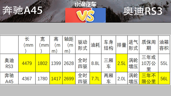 在当下马力至上,V8为王的年代,奔驰2017款A级AMG A45使用常见的直列四缸发动机,排量也只有可怜的2.0T,但是功率达到了惊人的381马力。回看奥迪2017款RS3,虽然400马力相比于奔驰A45的381马力略高,但是奥迪RS3使用的是直列五缸发动机,在缸数上略胜一筹。