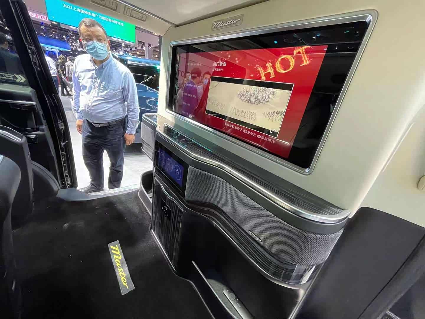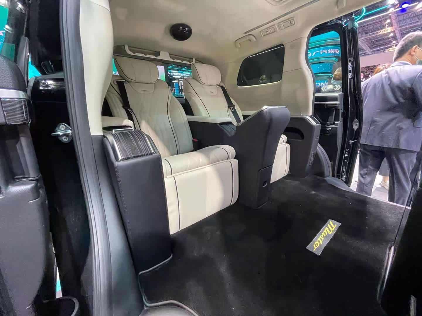 进入到后排,由于是四座版车型,第二排座椅要更加靠后,腿部空间只能用“富裕”来形容了。航空座椅、隔断电视。以及后排的控制屏幕均有配备,可以说该有的豪华配置均有配备。