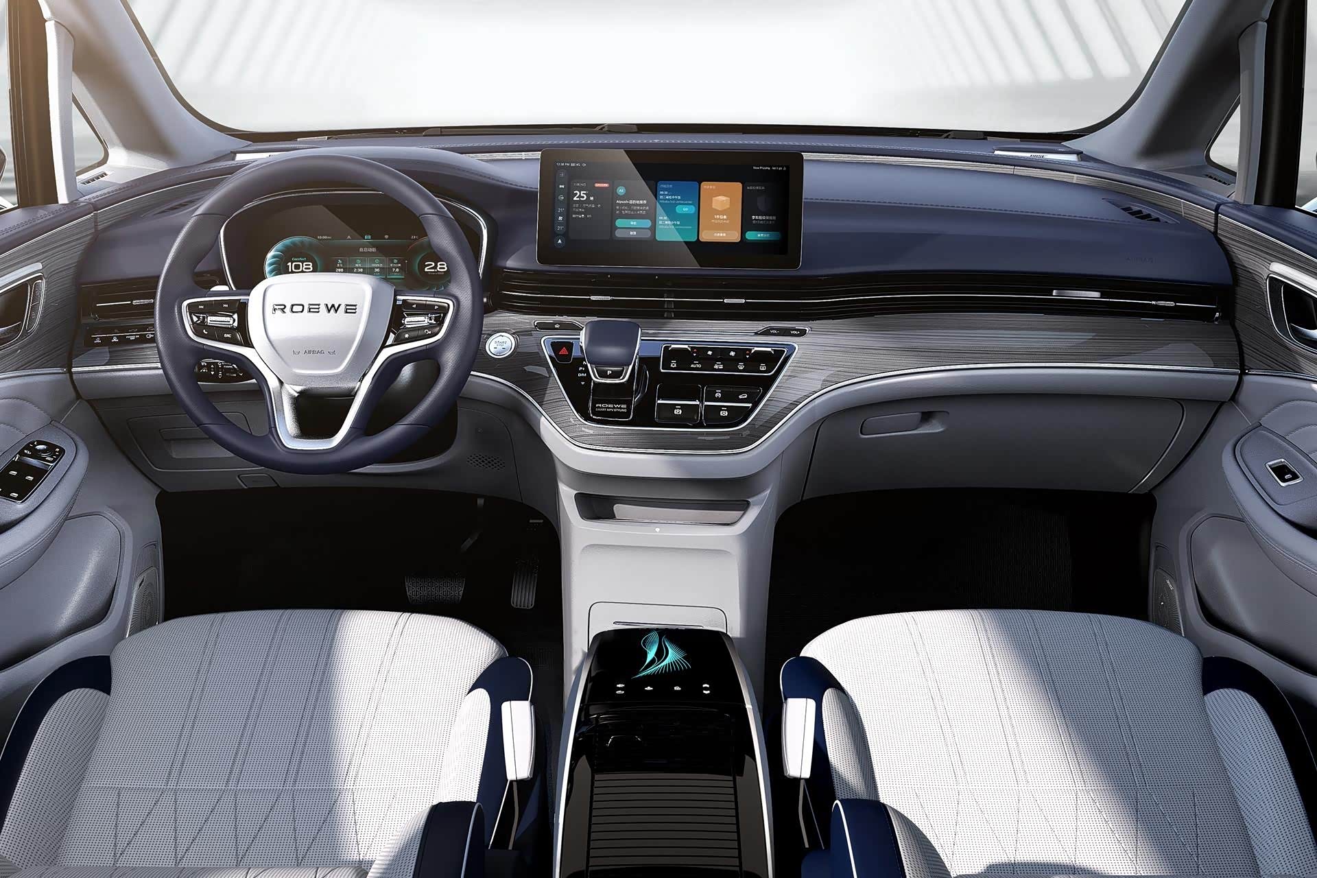 内饰方面,荣威iMAX8有着较为出众的设计感,贯穿式的空调出风口让中控台更有层次感,同时配备12.3英寸的全液晶仪表,同尺寸的中控屏幕内置最新的斑马智行VENUS系统,在智能化上表现较为出色。