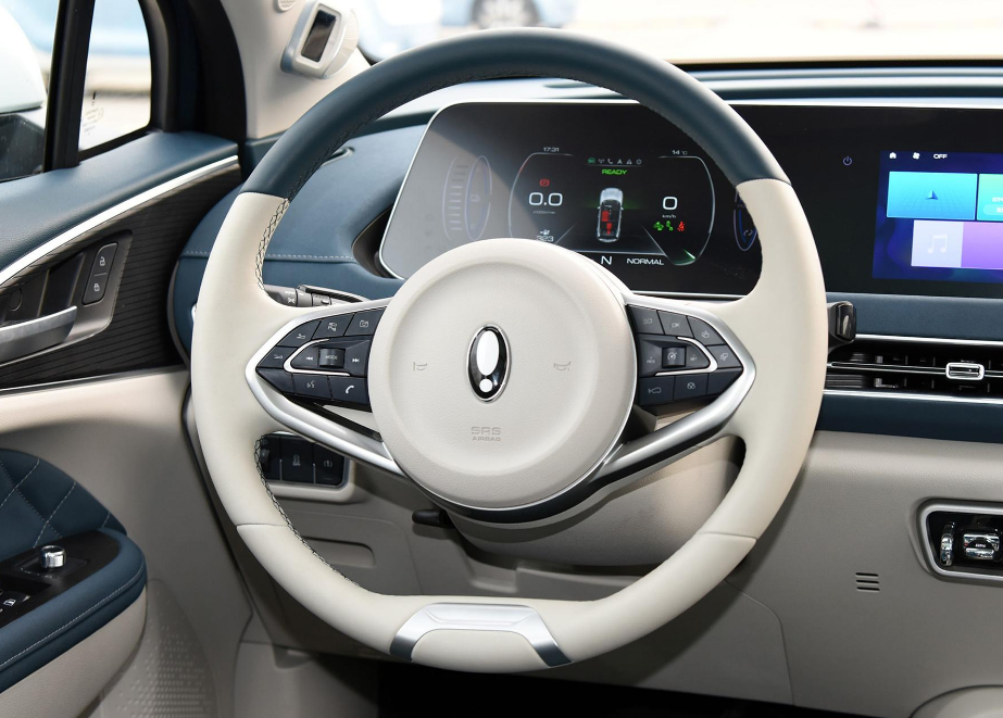 新车方向盘使用的是目前比较少见的两辐造型,且与内饰一样是拼色设计,不过上面的多功能按键有点多,所以需要时间去适应。至于换挡机构,欧拉好猫使用的则是旋钮式造型,有着很强的精致感,且旋钮的阻尼感也比较高级。
