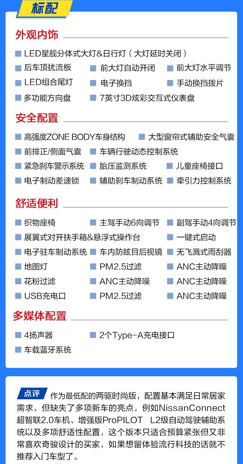 乘坐舒适性方面依然继承了日产多年来备受称赞的本领,这套被官方称为“Multi-Layer”的人体工程学座椅,前排填充物很扎实,支撑和包裹性也拿捏的很到位,并且配置方面支持电动调节及座椅加热功能,主驾还带有腰部支撑。