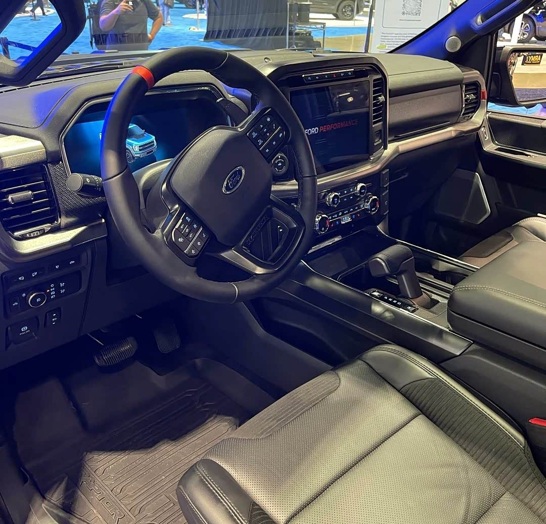 内饰设计上,新款F-150猛禽整体设计与老款车型并没有太大的区别,采用了大尺寸的液晶仪表,很有科技感。配置方面也有所提升,主要是增加了一些安全配置和信息娱乐配置,其中包括可支持整车OTA升级功能的SYNC 4信息娱乐系统,Co-Pilot360 2.0驾驶员辅助系统等,进一步提升车辆的可玩性与通过性。