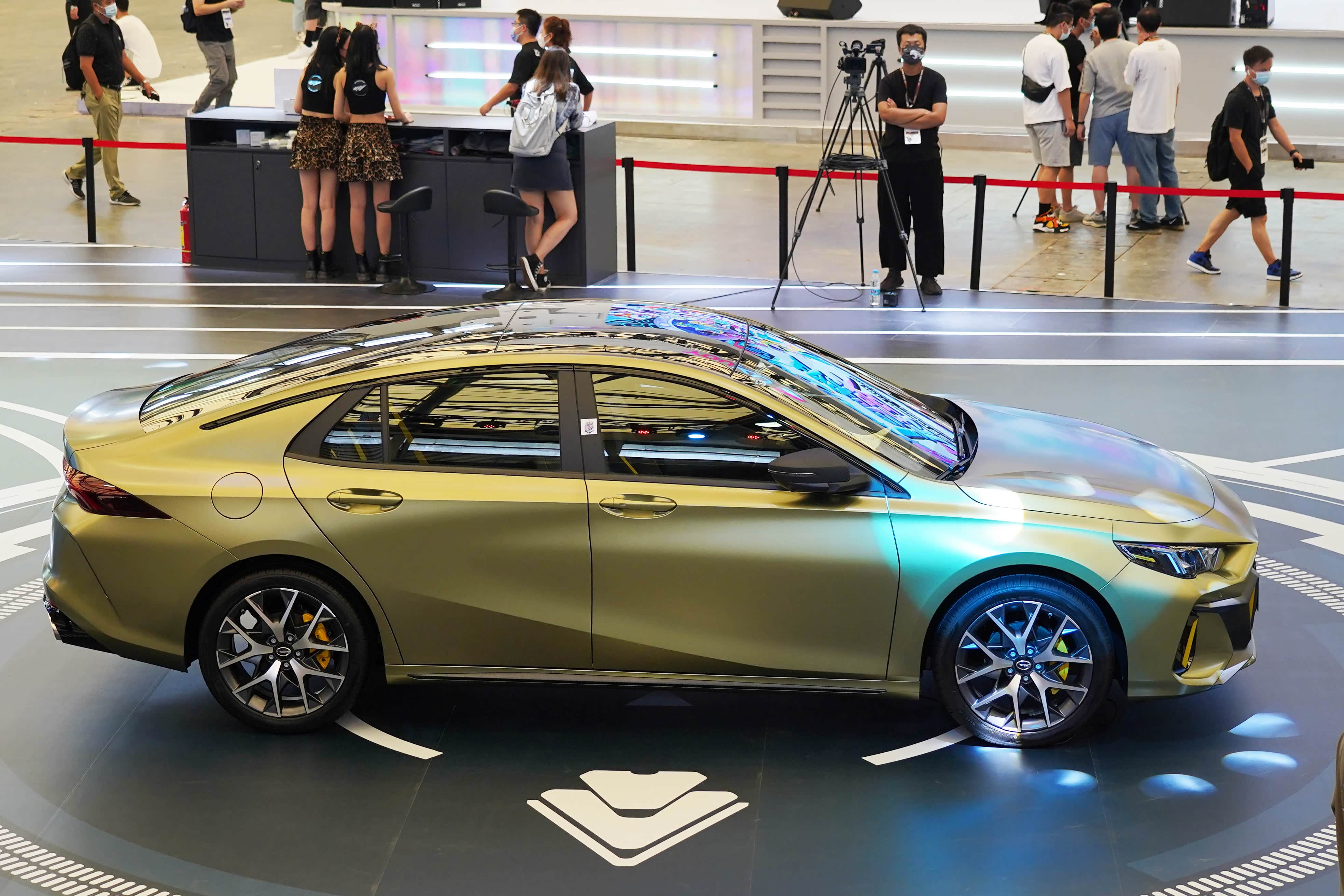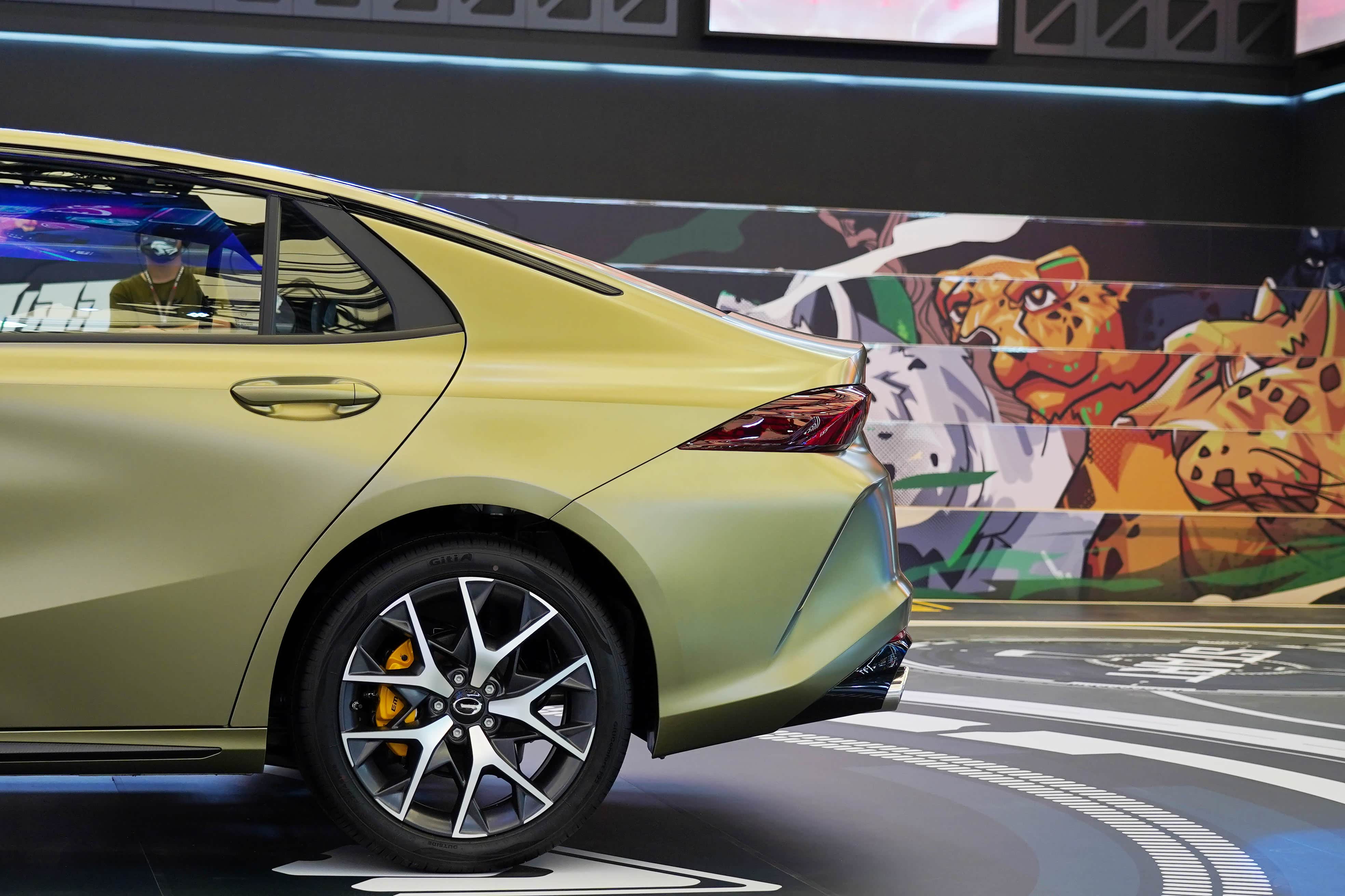 三围尺寸层面,影豹的长宽高分别为4700/1850/1432mm,轴距为2736mm,低矮修长的车身搭配溜背的造型设计,整体的运动性营造的很到位,另外这款车型的风阻系数也低至0.26Cd,更低的风阻能带来更好的燃油经济性同时高速稳定性也要更好。影豹的侧面设计很有看点。类似溜背的设计带来了出色的运动化感受,内凹的车门带来了非常出色的光影效果,车顶线条去往尾部的过渡很顺滑、很自然。