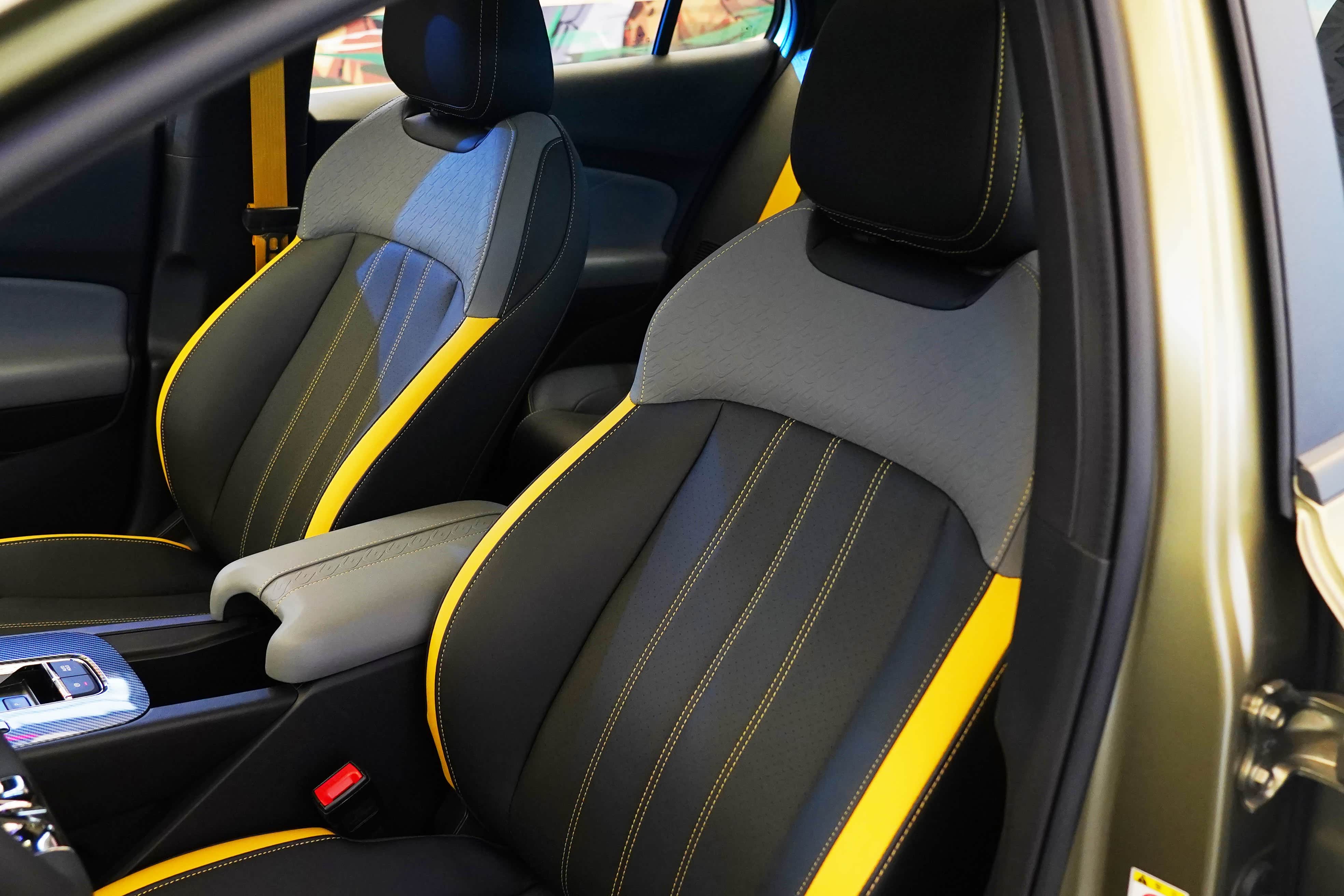 内饰层面,影豹的内饰设计同样很出彩,提供黑色、黑红、黑黄三种不同的配色方案,黑色最百搭、黑红最运动、黑黄则最骚气,绝对都是年轻人喜欢的风格搭配,整体内饰采用环抱式的战斗座舱、加上贯穿的屏幕设计,我们拍摄到的展车纯黑的内饰搭配黄色的细节点缀还是能带来较强的运动感。显而易见,这是套年轻化、运动化的内饰设计,非常棒。