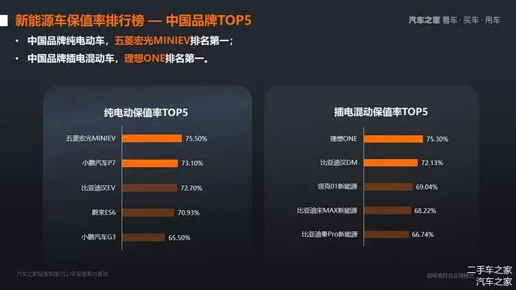 图二显示的是新能源汽车保值率——中国品牌TOP5,简单总结就是
