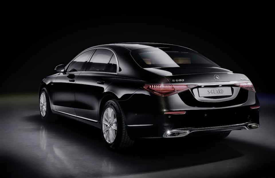 你很难想象,一台被武装到牙齿的奔驰S级,外观看起来竟然如此低调。没有经过修饰的外观套件、并且轮胎的扁平比也不夸张,看起来就像一台入门的S 400 L。但是,尾部车标直接暴露了它的身份——“S680 Guard 4MATIC”。