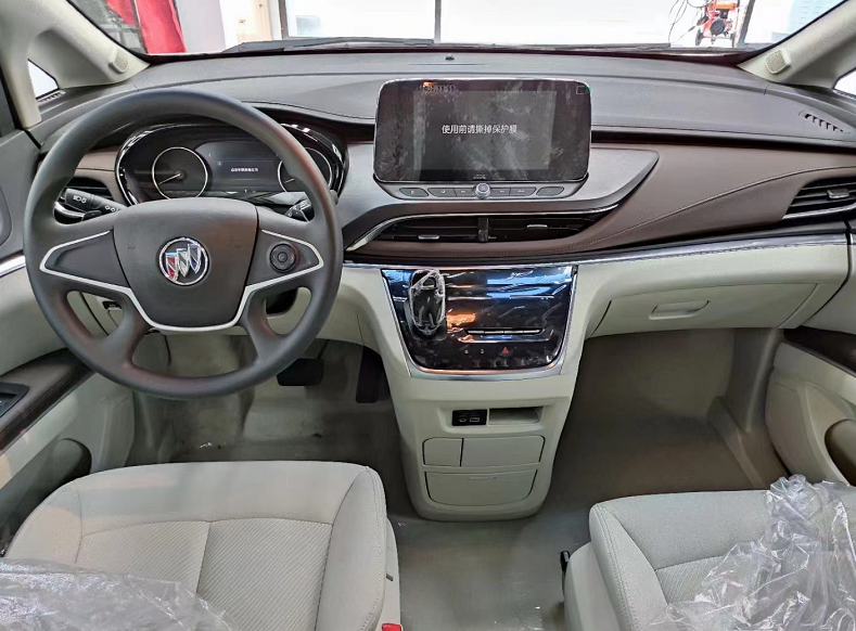 这辆别克GL8的内饰设计看起来特别的简单,也不愧是入门版本的车型。从中控部分来看,搭载了十英寸的悬浮液晶屏,行车电脑屏则采用的是双炮筒的仪表盘,光秃秃的方向盘上只有一个按钮,看起来很low,而且方向盘还是塑料的。此外,这款GL8还拥有电子挡把,空调控制区是触控屏幕的,除此以外我感觉这辆GL8并没有多么出彩的设计了,座椅还是织物的。这类车型的方向盘,后期也是需要经过真皮包裹的。