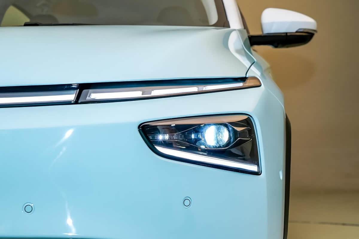 前包围也是运用了较多的曲线线条,视觉上极具未来感,底部还留有进气格栅口。而分体式大灯也与车身线条融合,灯腔内也都进行了熏黑处理,视觉上很棒,并且整体感很强,光源上全系都是标配的LED远近光。