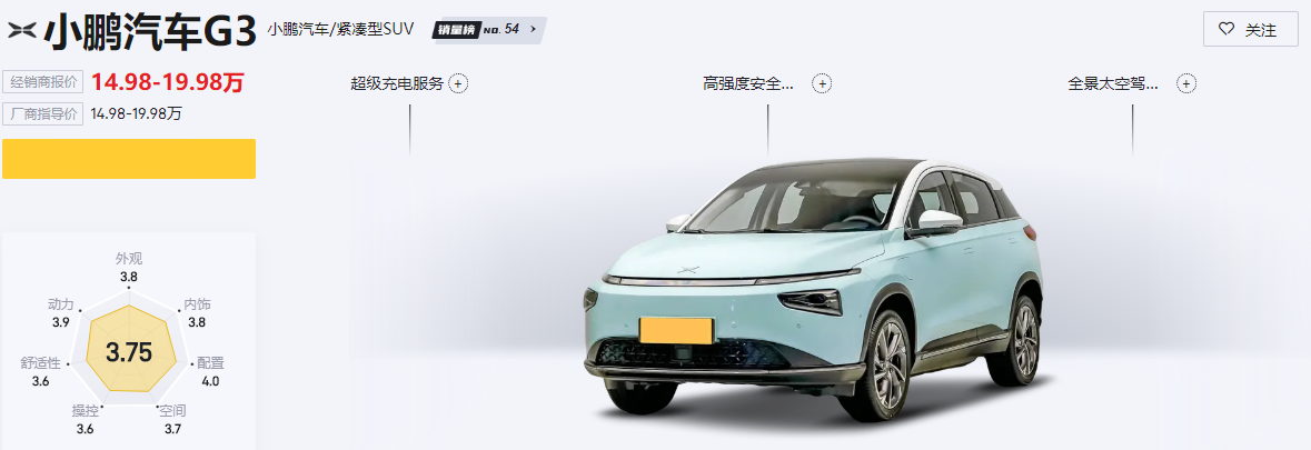 小鹏G3作为小鹏汽车造车的第一辆车,它的定位是紧凑级SUV。目前市面上小鹏G3也是有10款车型在售,其中2020款已是停产,2021款也是刚刚改款没多久,并且更名为小鹏G3i。而在享受政策补贴后,小鹏G3的售价为14.98万至19.98万,这个定位其实在同级别中并没有什么优势,几乎和合资车持平。