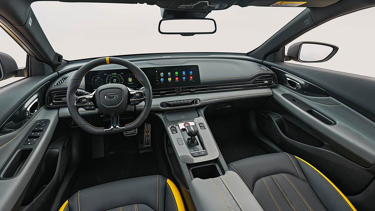 车内采用了大量的软性材质包裹,拥有全黑、黑红及黑黄三种配色,双联屏设计带来了不错的科技感,内置ADiGO智能互联生态系统,可实现人脸识别、疲劳驾驶监测等功能