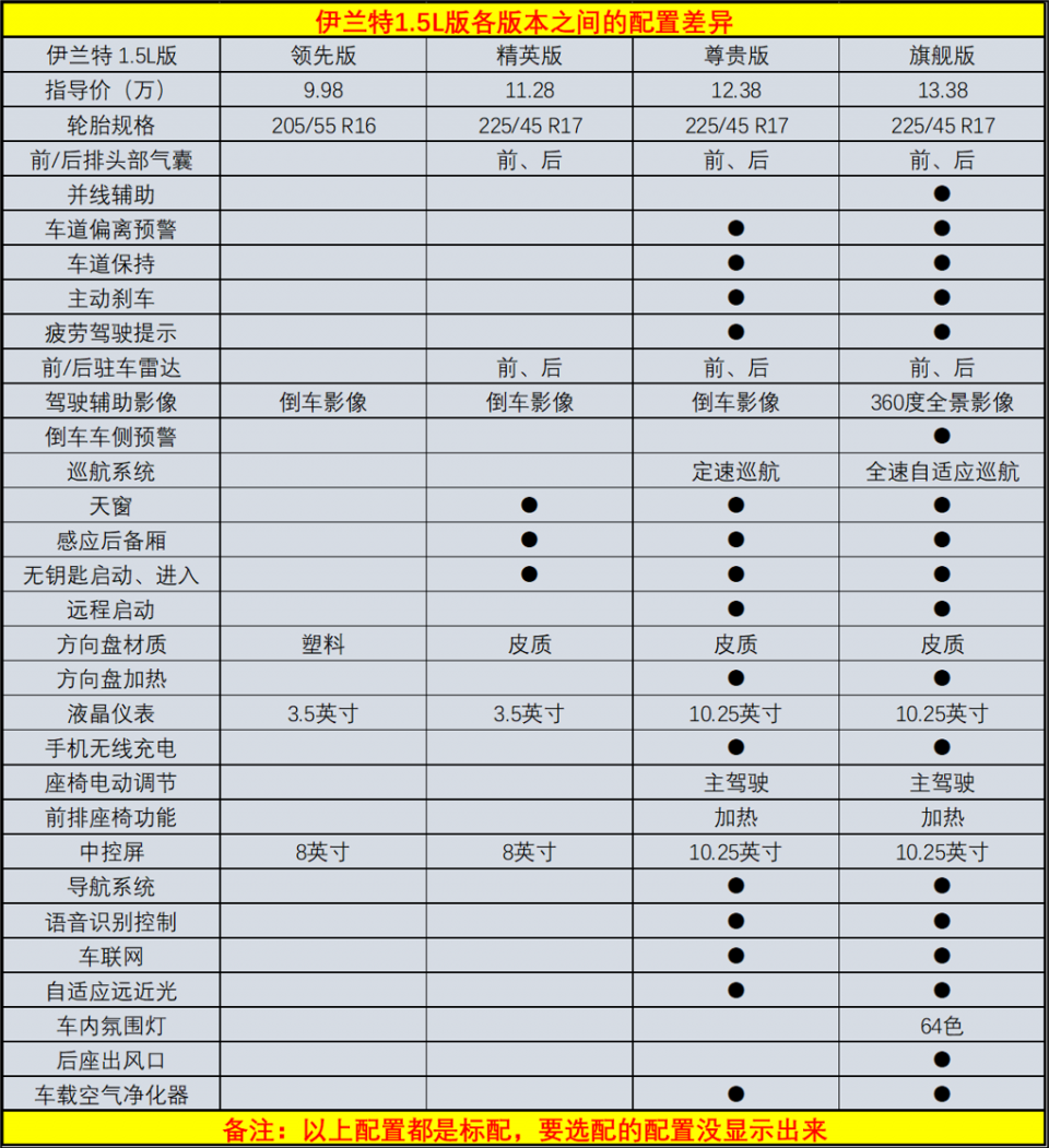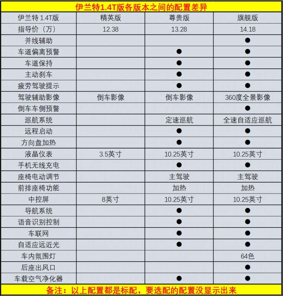 购车上,伊兰特拥有1.5L和1.4T版,这两个版本来说,除了1.5L版拥有领先版,其他版本名字都是一样的,他们主要的区别还是在汽车的核心动力系统上。