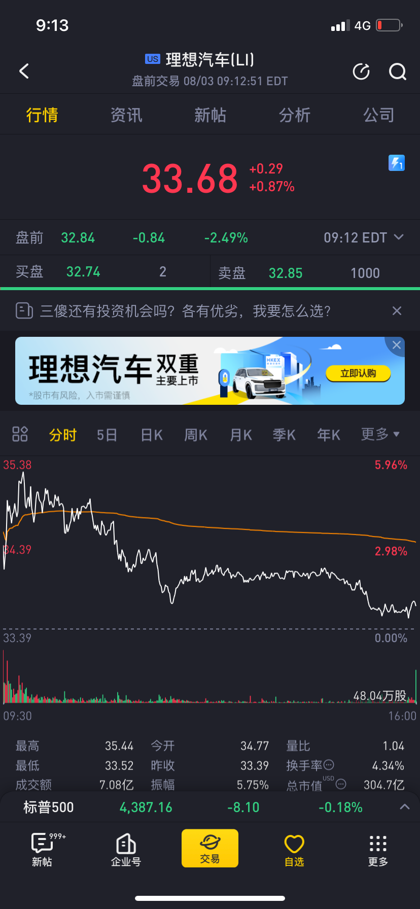 据港交所文件显示,理想汽车将于8月12日上午九时正(香港时间)开始在联交所买卖。将通过香港IPO发行1亿股股票,最高发行价为每股150港元。理想汽车表示,公司计划将香港 IPO 筹资金额用于研发高功率充电的电池动力汽车技术、平台和未来模型、智能汽车和自动驾驶技术,以及增程式电动汽车的未来模型;扩大生产能力,开设门店,交付服务中心、开设高功率充电网络、营销推广;以及营运资金和其他一般的公司用途。截至发稿,理想汽车(LI)报33.68美元/股,市值为304.7亿美元。