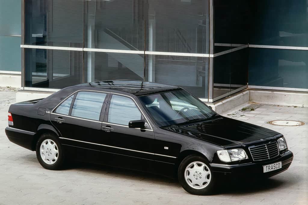 今天小编给您介绍的是欧洲专业防弹车制造商特斯拉克(Trasco)基于虎头奔打造的一款防弹车,这款车名为Trasco-Bremen TSF 140。从外观上看,它和普通版的W140虎头奔毫无区别。