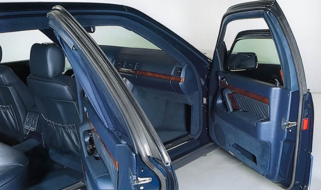 不过,拉开车门后,却别有洞天。首先是侧面的车窗玻璃,相比于原版的W140更厚实,并且采用了多层夹胶防弹玻璃。其次,车身多处更换了民用装甲材质。此外,车门内侧还增加了一圈加厚的超高强度钢,确保车辆的安全性能。