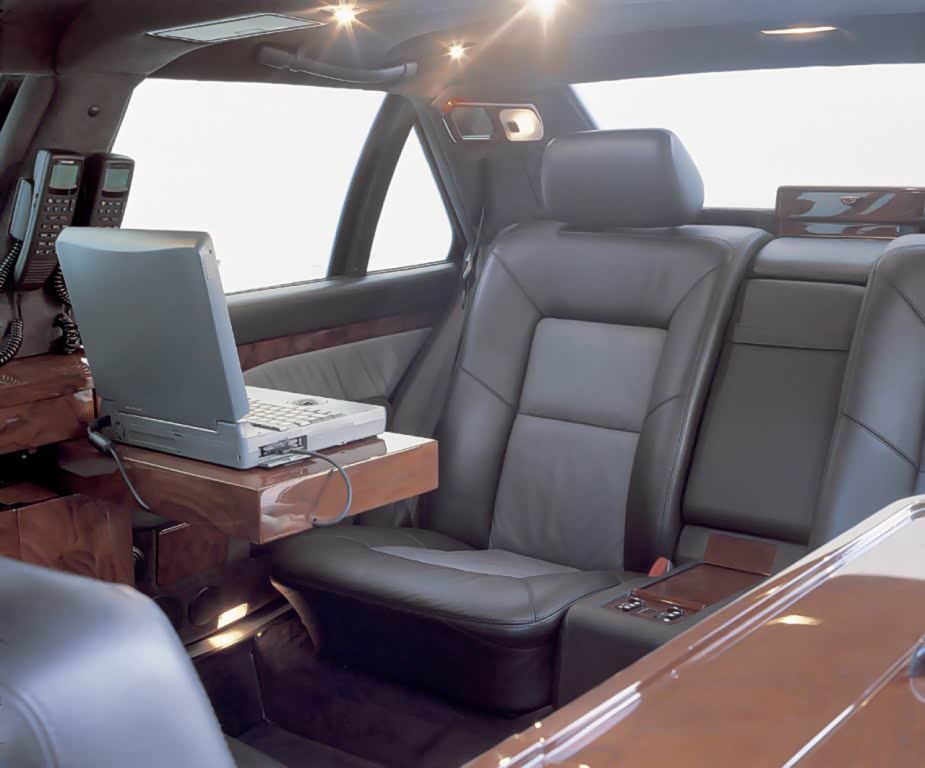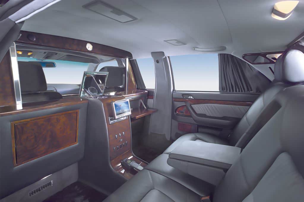 特斯拉克S级加长版防弹车型可以选择带隔断和不带隔断两种车内布局,并且还可以选择四座布局和五座布局。加长版的车内设计,即便是放在今天也同样非常奢华。