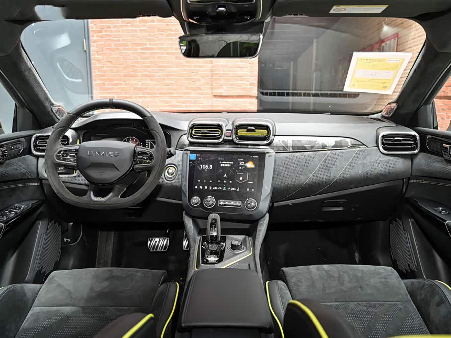 领克03+中控台向驾驶员一侧倾斜,同样采用Alcantara材质包裹的方向盘,包括门板、挡杆台、挡杆、座椅等部位也采用了Alcantara材质,同样有很强的赛车感。车内还配备有10.25英寸全液晶仪表盘和10.1英寸中控屏,还有燕飞利仕音响,同样能获得完善的数字交互和音响体验。