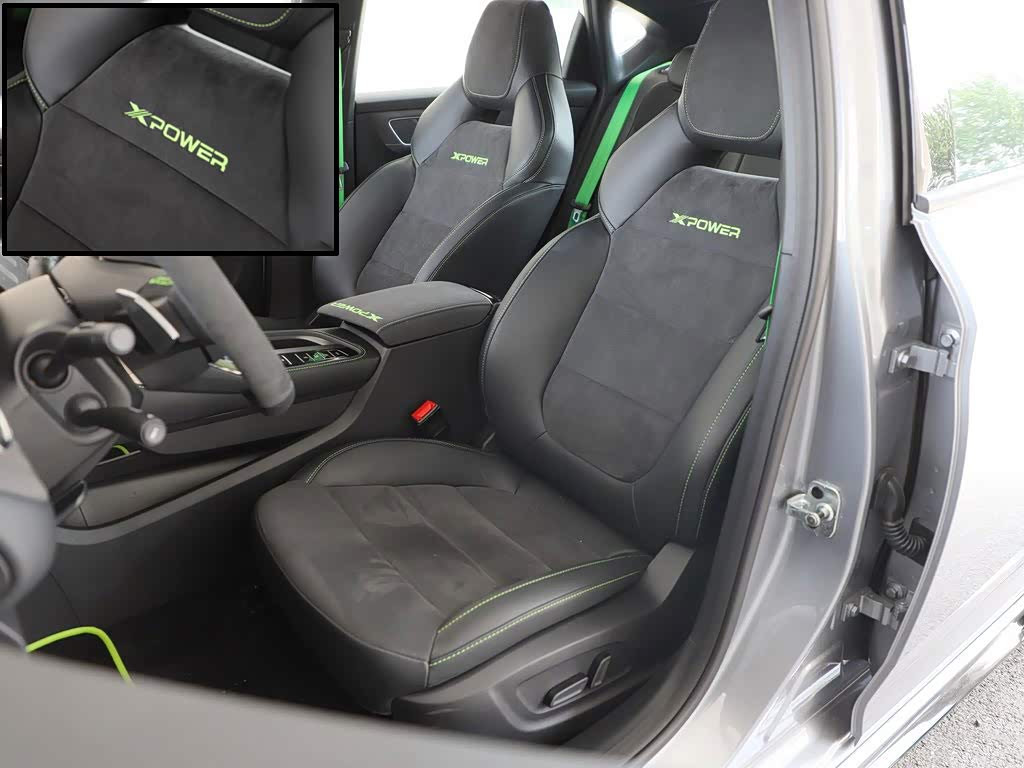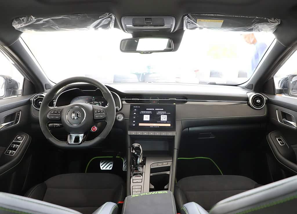 MG6 XPOWER内饰同样体现出赛车感,D形方向盘采用Alcantara材质包裹,带来赛车般的抓握手感。细节加入了丰富的绿色元素点缀,包括座椅、门板、中控台、方向盘和安全带等。保留了12.3英寸全液晶仪表盘和10.1中控屏,运动与科技感并存。