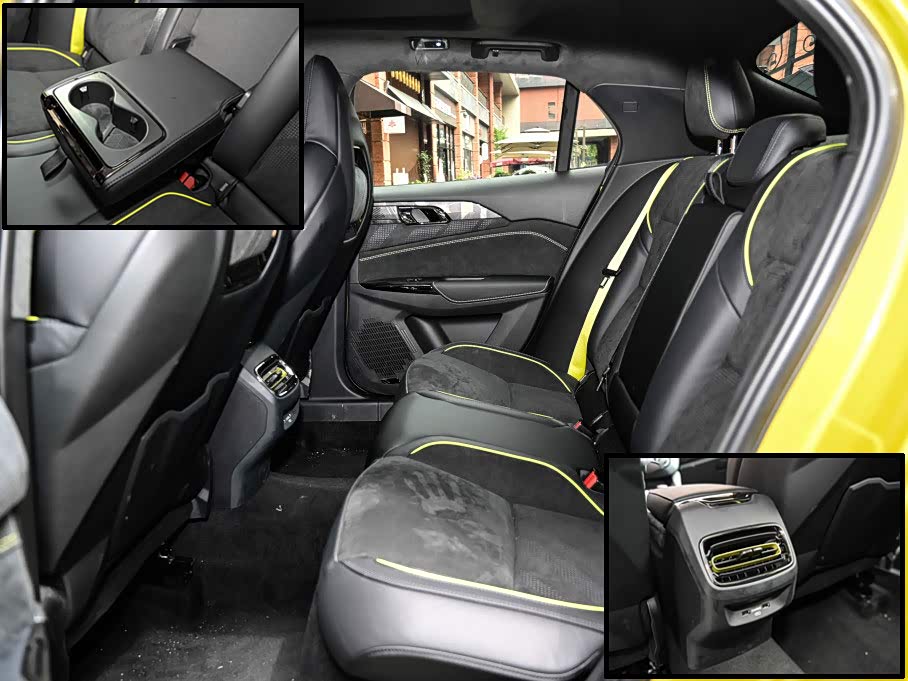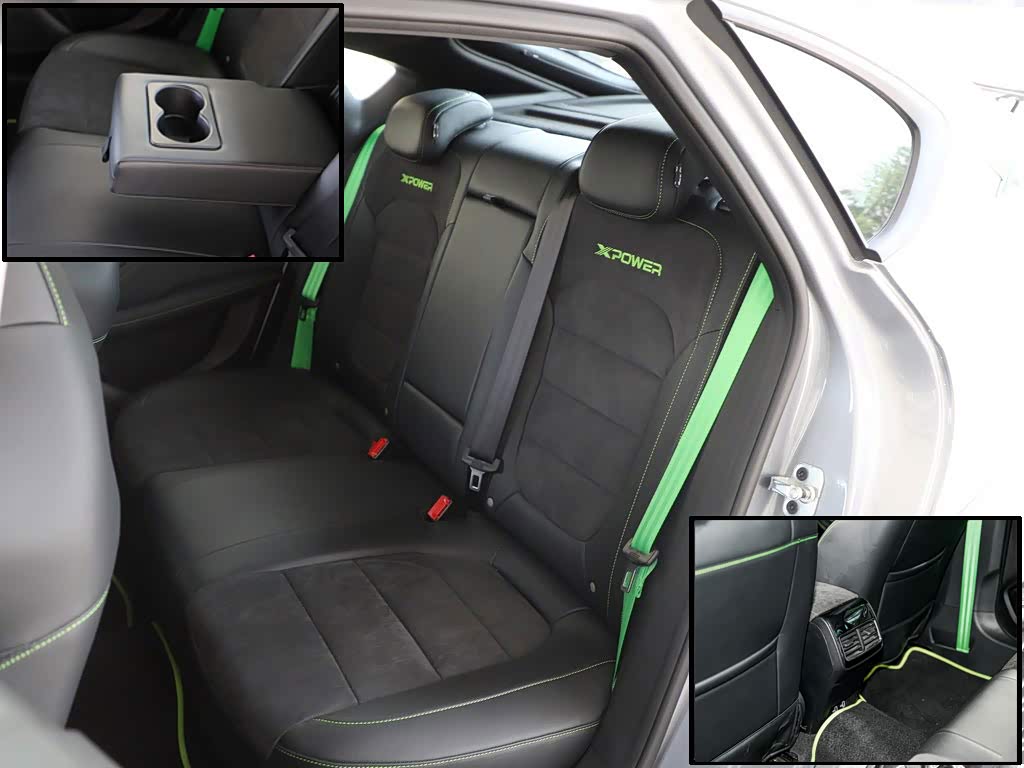 两车后排座椅材质均与前排相同,MG6 XPOWER的“X POWER”标识在后排也没有落下,但就座椅的包裹性、承托力以及腿部空间来说,领克03+都要更加出色。两者在配置上旗鼓相当,均配备有带两个水杯架的翻折扶手、地台式出风口、两个USB接口,而MG6 XPOWER没有配备中间头枕。