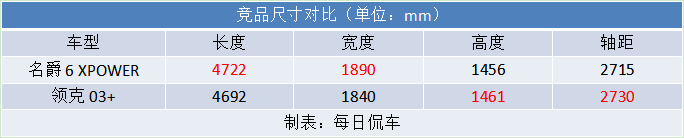 尺寸方面,在MG6 XPOWER长度和宽度都比较大,领克03+轴距更长,高度也略高些。从运动化角度看,短轴距、短长度、宽车身和低高度是最理想的,MG6 XPOWER从车身整体结构似乎是更有优势,如果长度上再控制下就更好了。