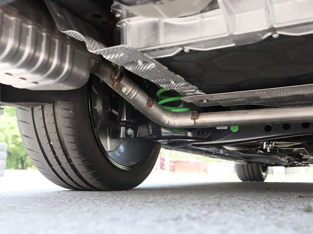 底盘方面,MG6 XPOWER采用前麦弗逊独立式+后扭力梁非独立式后的悬挂组合,虽然后悬挂为非独立式,但它采用大量赛车化的配件,比如有高性能单筒后减振器、强化的绿色弹簧和各种连接件,底盘整体刚性出色,能够实现100km/h—0制动距离33米的优异表现。领克03+采用前麦弗逊独立式+后多连杆独立式悬挂组合,底盘虽然做了一定的强化处理,但并没有MG6 XPOWER那么极致,过弯与制动的极限能力都略低。不过,领克03+配备有适时四驱系统,赛道中出弯的速度要更快些。