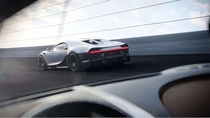然后,为提高扩散器的效果并为其提供更多空间,布加迪将原本位于中央的排气系统放置于两侧,并采用上下对齐的方式垂直排列。而扩散器横截面积的进一步增加,使扩散器后缘的位置也更加偏上,从而将车尾的后缘面积减少了44%。由此,气流和风阻得以显着降低。