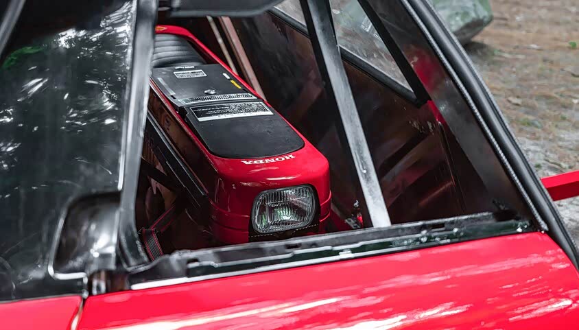 说到这,可能有眼尖的网友发现了本田著名的小摩托Motocompo,这是80年代初日本非常受欢迎的本田折叠摩托,Chris也搞到了一台,他将其放在了拖车前部,空间刚刚好。而且液压延展板落下后刚好成为了舱门,设计思路相当巧妙。