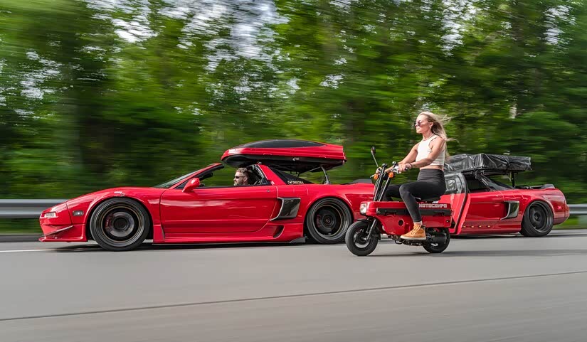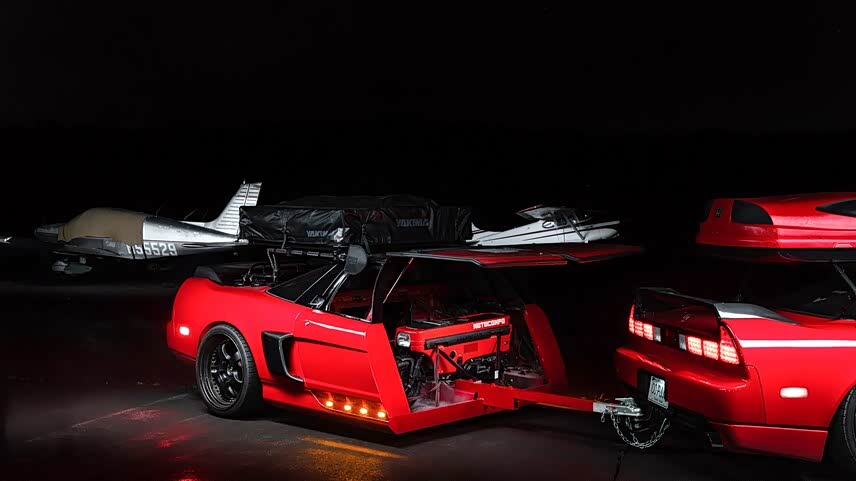 至于后面的拖车,也是不经意而为之。这件事本身就很疯狂,Chris解释道:“后面的拖车是一台1991年款NSX,也是不经意而为之。这台车买来后撞了两次,第一次撞了车尾,我修复了它,第二次又撞了车头。根据本州相关法律法规,老爷车修复次数超过两次就不能合法上路,于是我决定把它拆解作为拖车。”