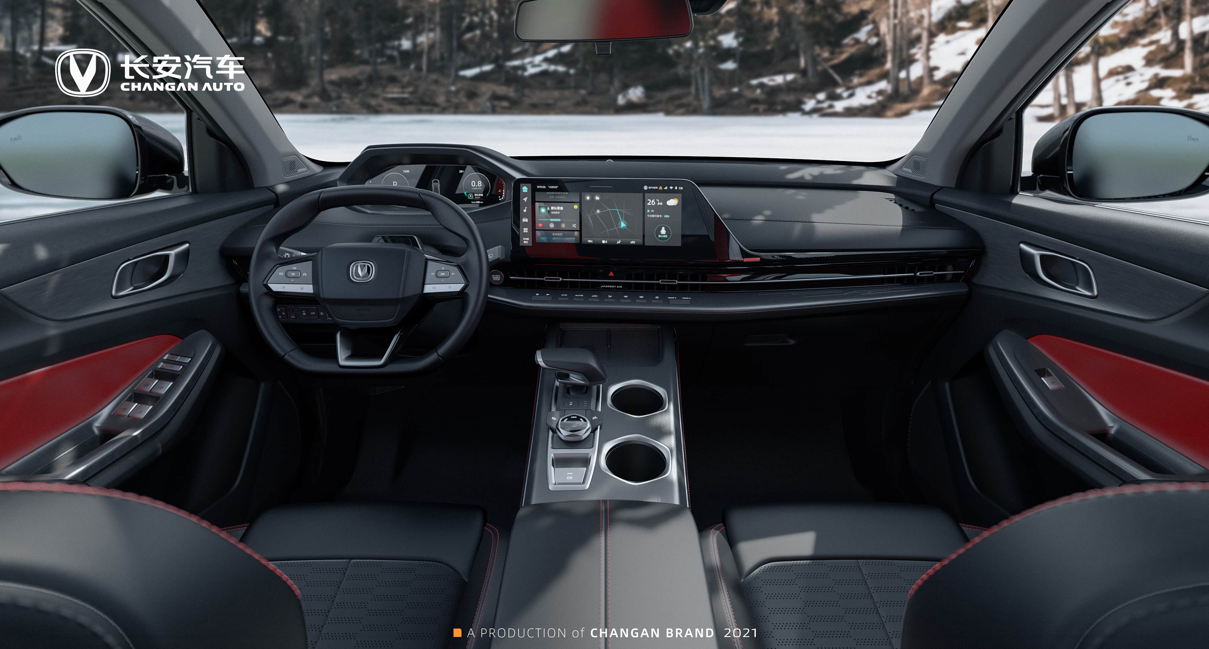 内饰上一定是此次很大的改变,前后交错的仪表盘和悬浮式中控大屏,营造出了一种很强的科技感,未来科技量产者也并不是说说而已。黑红的撞色设计,并没有过多的采用红色,而是在你不经意的时候总能发现一些红色的影子,更好的营造出了它内饰上的运动风格。