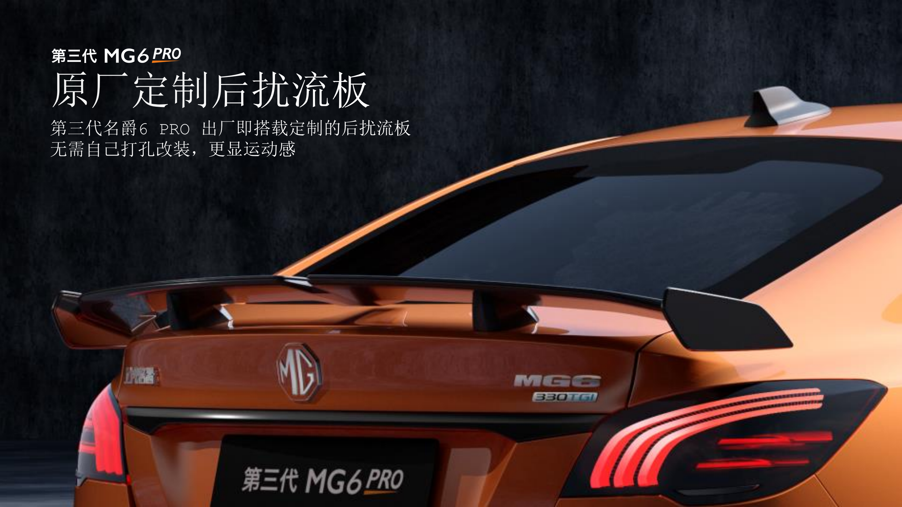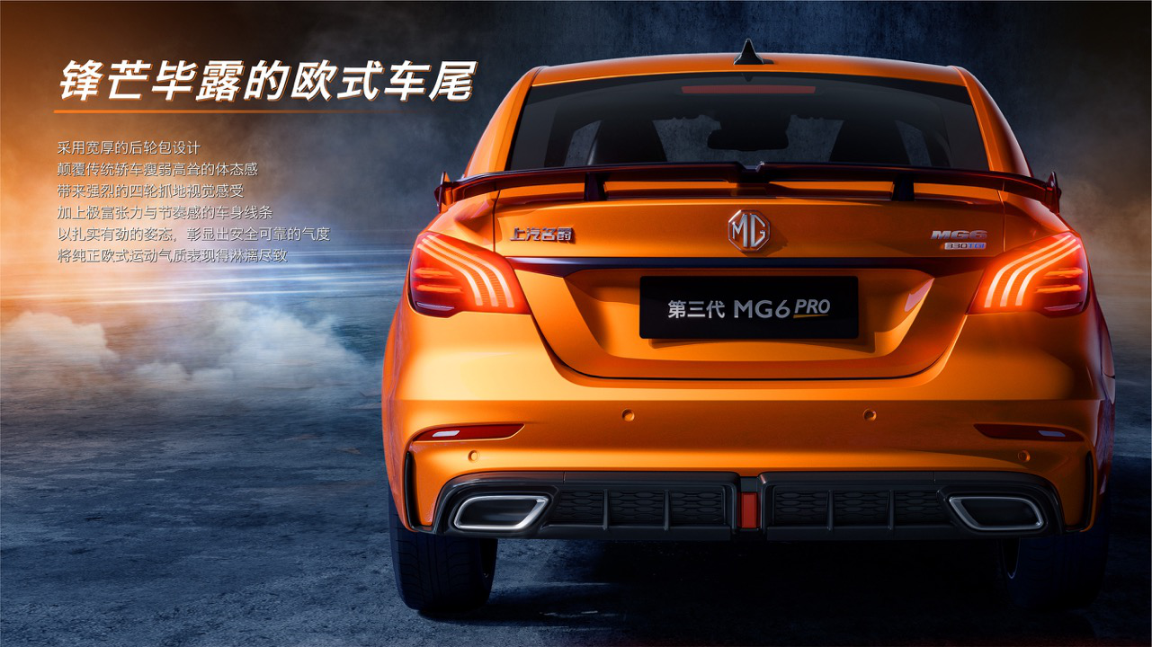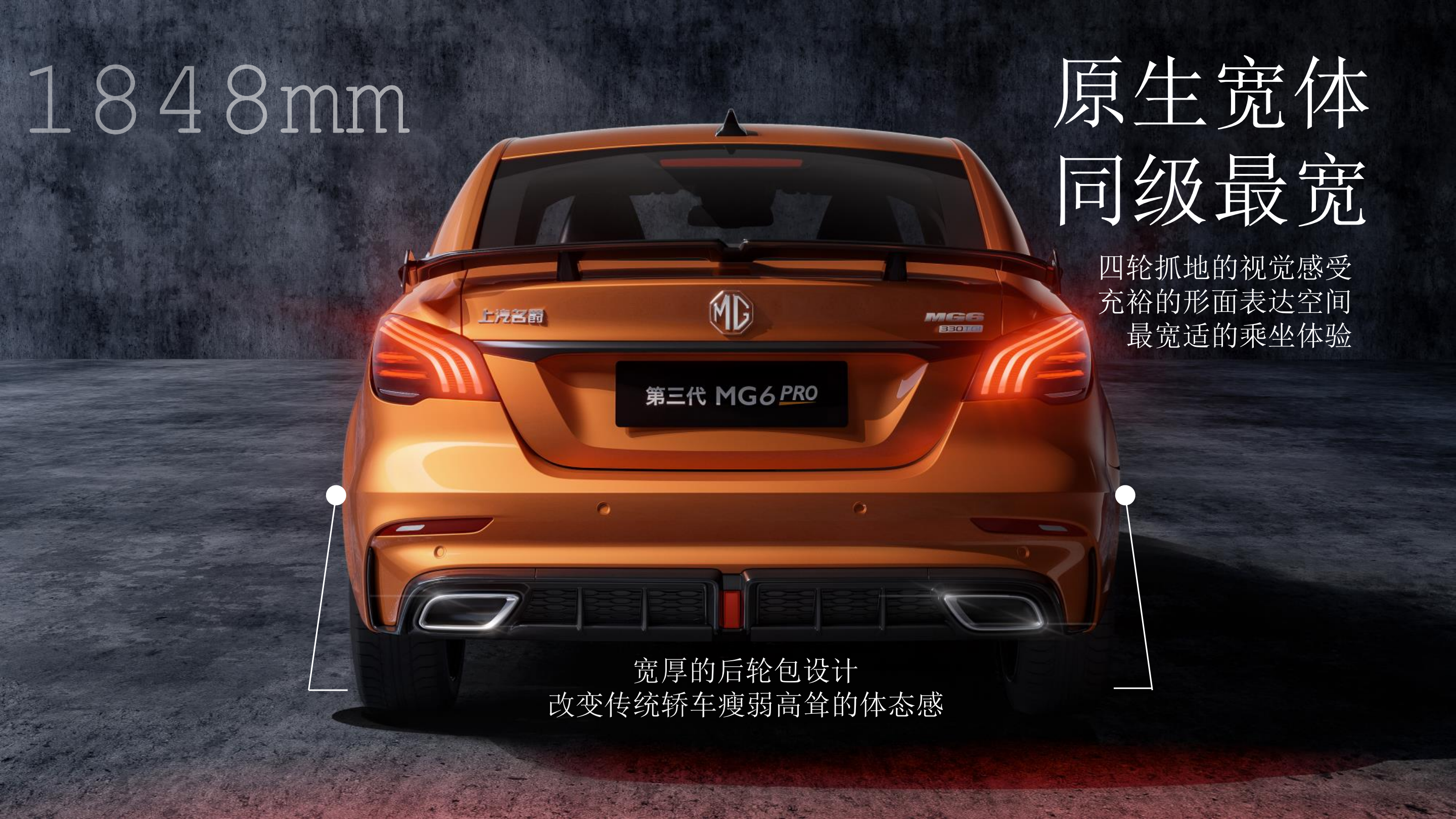 【欧式运动车尾】丰富的形面处理,强调高级定制展现纯正的欧洲运动气质。名爵6PRO车尾的风格依然只求运动和犀利,包括贯穿整个车尾的尾翼、贯穿尾箱的黑色镀铬、最下方的运动包围和低位刹车灯。不过最明显的地方在于它的视觉效果比同级别普通家用车更宽,这是因为一方面它本身自带宽体,而另一方面它还拥有1848mm的同级上等水平的车宽。