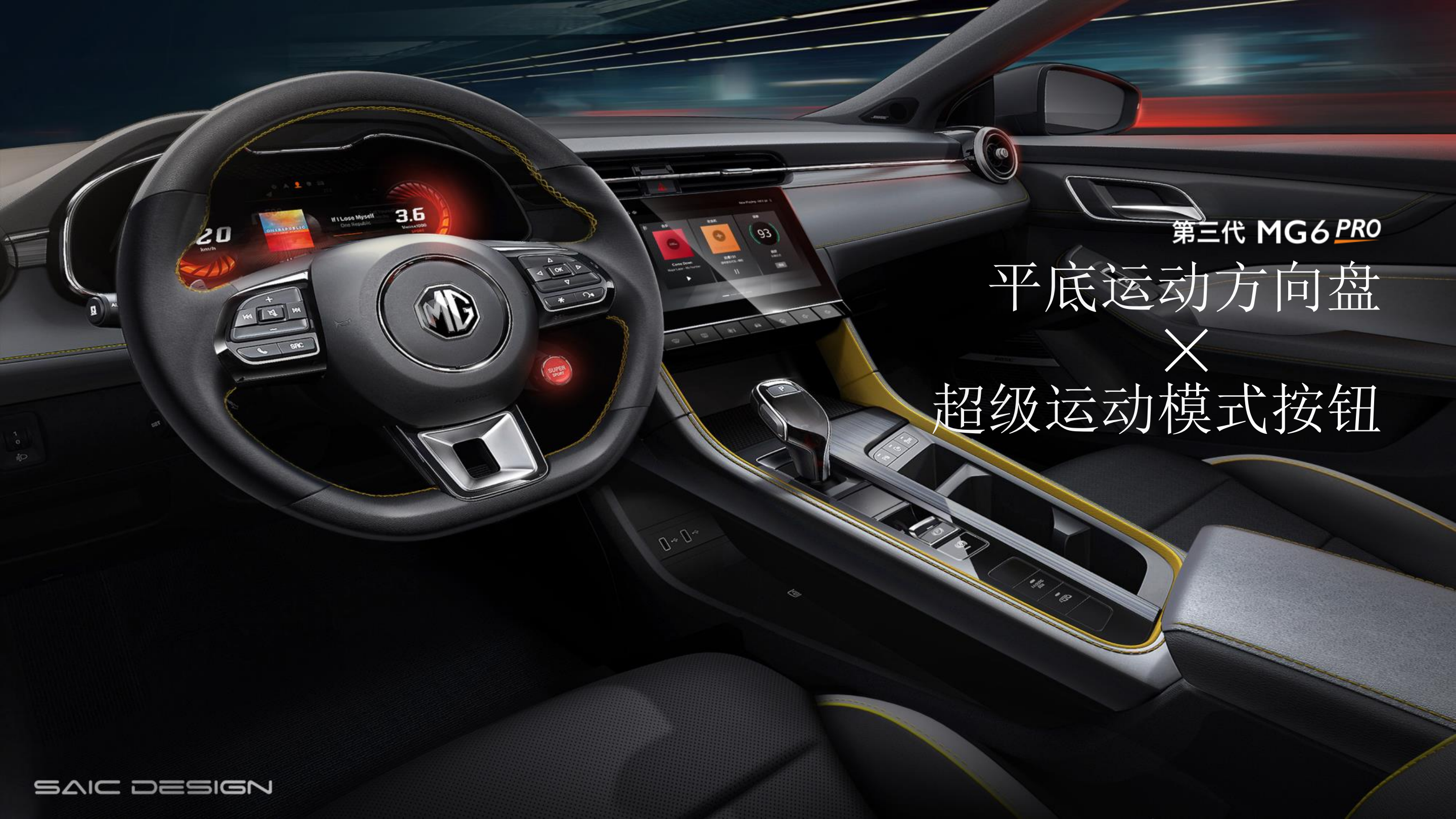 【平底运动方向盘】真皮三辐式平底多功能方向盘的造型样式与现款车型基本保持一致,在用料上两侧采用了Alcantara包裹手感更为出色,更加运动。两侧的多功能按键触感出众,可以做到轻松盲操。MG招牌红色SPORT运动按钮则时刻提醒着驾驶者这是一款运动澎湃的车型,加上超级运动模式按钮、凸显动感。