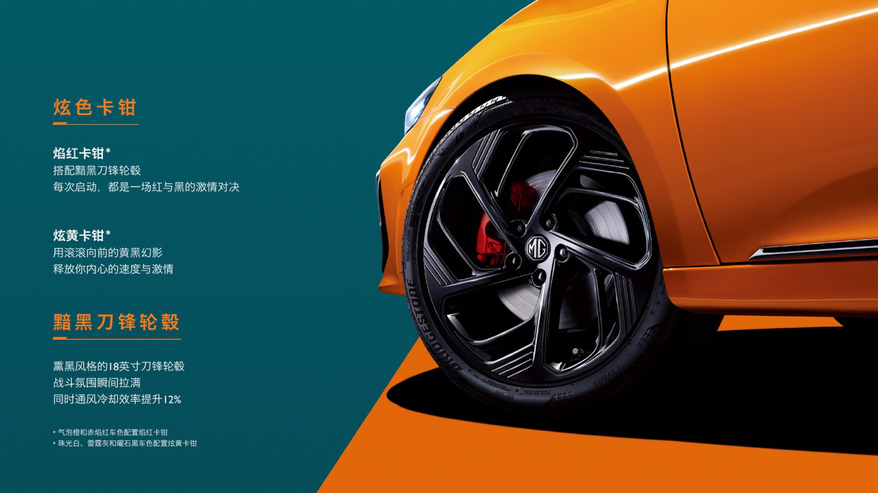 红色运动卡钳*18英寸刀锋轮毂凸显运动感。前后轮胎规格:225/45/R18。