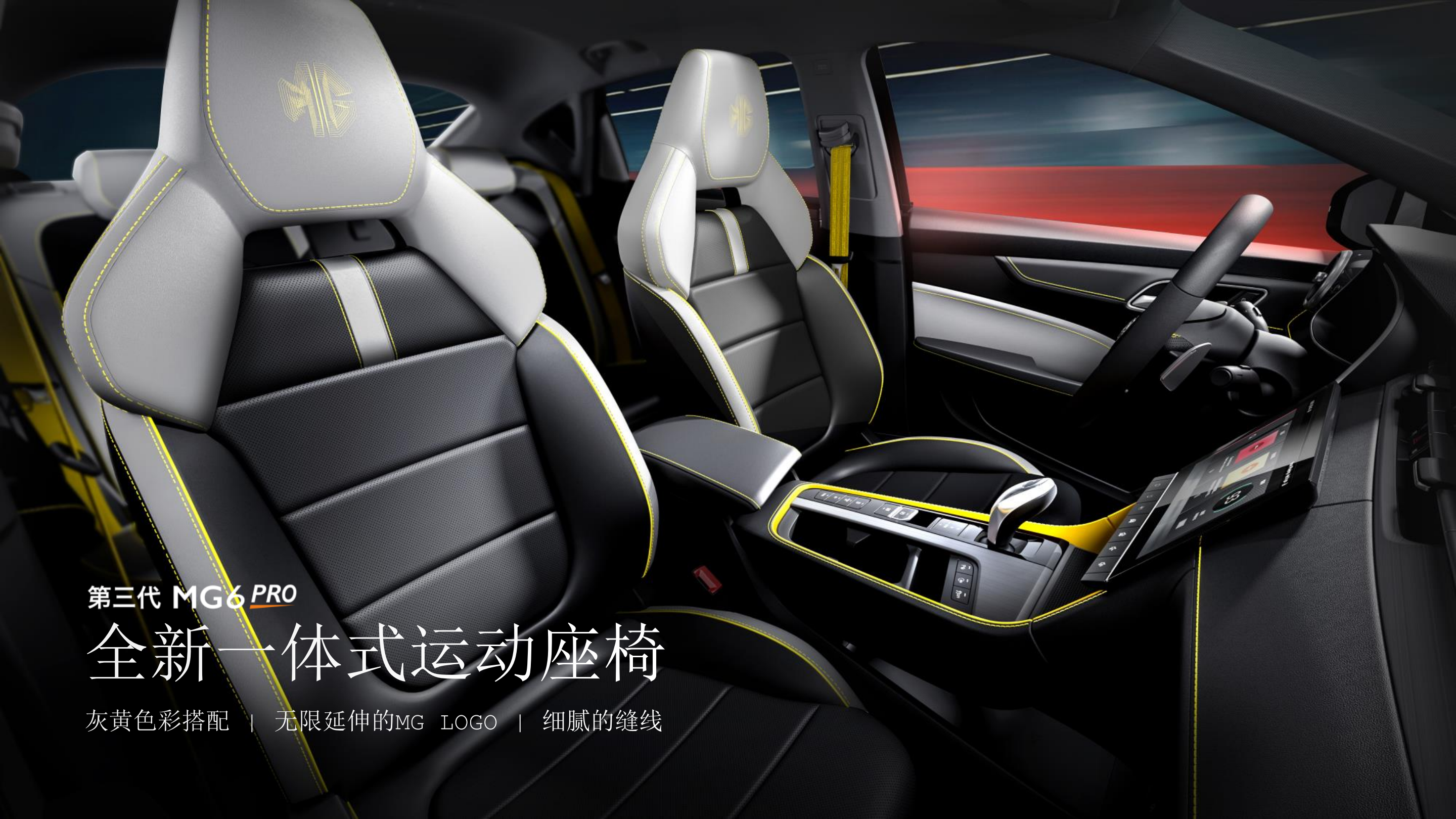 【全新一体式运动座椅】灰黄色彩搭配,无限延伸的Mglogo以及细腻缝线、彰显运动感的同时带来舒适、运动范儿仍旧没有消退。首先映入眼帘的,是那灰黄双色搭配的一体式运动座椅,并且做工细腻,还刻上了无限延伸的“MG”LOGO。其次比较挪不开眼的,是平底式方向盘右下方的红色启动按键,既经典又“扎眼”,让人忍不住想要立马开起来。不过,当你的手放倒档把的一瞬间,你又会被旁边那一排排按键所吸引,有ESP开关、360全景影像、自动泊车,甚至还有驾驶模式和声浪开闭。