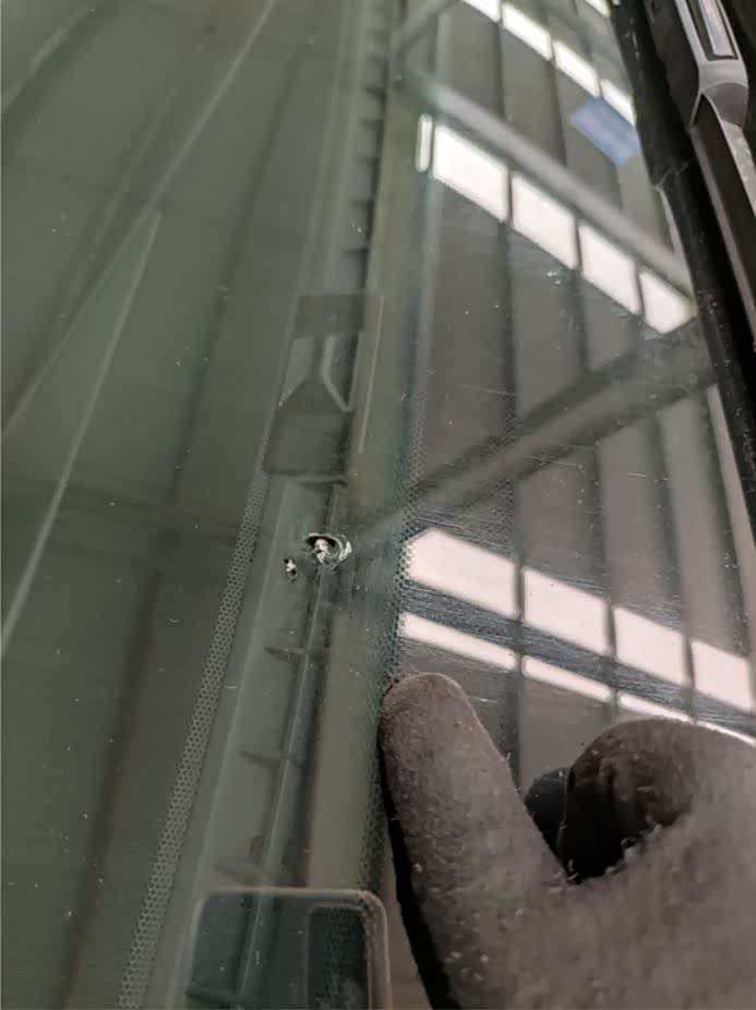 从制造日期上看,前风挡玻璃还是原厂的,并没有更换,但是玻璃表面有小凹坑和裂纹,为了安全着想,回去最好将它换掉。
