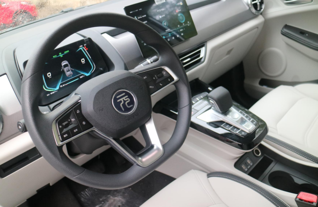 内饰方面,大面积的迷雾灰饰板搭配浅色内饰,简洁飒爽的北欧风格更受女性用户的喜爱。这套内饰风格其实对大家来说都比较熟悉了,毕竟这套内饰设计已经在比亚迪其他车型上多次出现,虽然没有太大的新鲜感,但整体还是非常耐看的,简约大方。元Pro的多功能方向盘采用的是比亚迪新的款式,唯一遗憾的是没有真皮方向盘选择,手感欠佳,考虑到成本的原因,这也无可厚非。