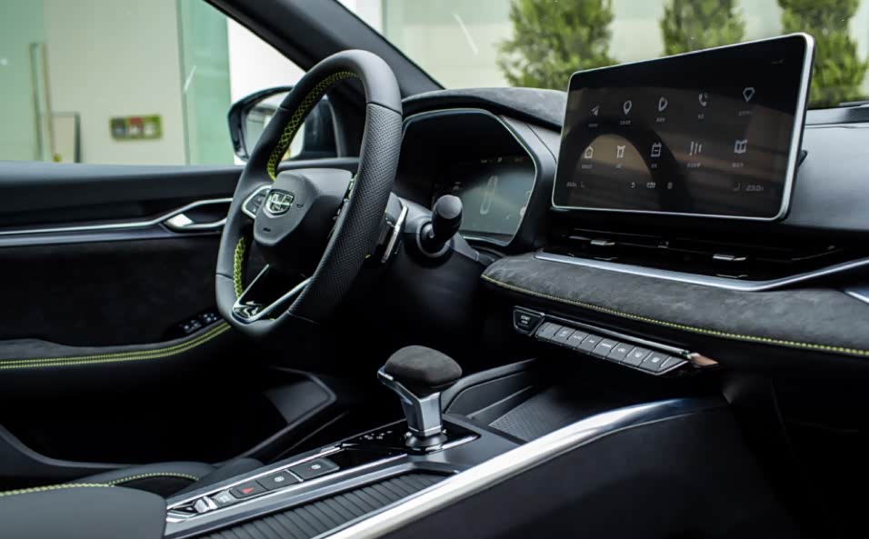 内饰上 这个版本的星瑞主打的就是运动感,因此内饰整体设计非常偏向运动化。中控台、车门板内衬、车顶、座椅等处均覆盖Alcantara材质,而且中控饰板和车门饰板中还加入星河镭雕3D设计,细节满满“yyds”,如果这个图案可以点亮的话那我原称它为同级别最强内饰设计。座椅缝线和安全带都选择亮黄色,与整体黑色内饰的组合,嗨呀把细节控心理拿捏得死死的。座椅上还有CMA字幕刺绣这你受得了吗,妥妥的仪式感和运动感,座椅的包裹性和柔软度我个人非常喜欢,让人爱不释手。三屏联动科技感无需赘述,它的导航信息可以实现从中控到仪表再到HUD显示,让驾驶员把精力更加专注于前方。 在配置方面,吉利星瑞“时空版”搭载整车OTA云端升级系统、L2级自动驾驶,还配有上帝之眼540°透明底盘、RPA手机遥控泊车、BOSE高级音响系统、车载香氛系统等丰富配置,合资品牌说“你玩吧,咱们撤了”。