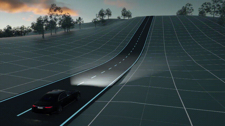 此外,这套大灯系统还能和摄像头以及导航系统联动,利用转向角和弯道横向G值等数据进行计算,在弯道上可有效扩大司机的视野范围。而在上坡和下坡路段,大灯还能提前调整照射角度,避免出现“上坡坡上黑,下坡灯下黑”的情况。