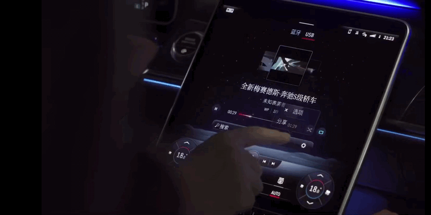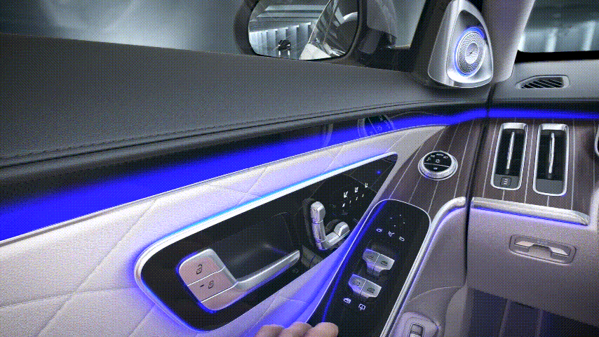 全新S级轿车的智能数字座舱是MBUX多媒体系统、主动式环境氛围灯以及智能魔术车身控制系统结合在一起的终极产物。