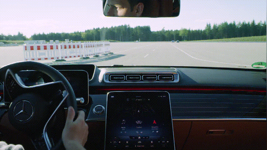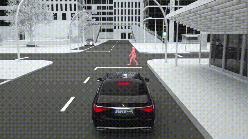 此外,主动刹车功能不仅仅在直道上有效,在城市道路和乡间道路上转弯时,也能有效降低“鬼探头”的事故风险。对于侧面突发情况的感知,其实是全新S级轿车对环境感知能力的集中体现。