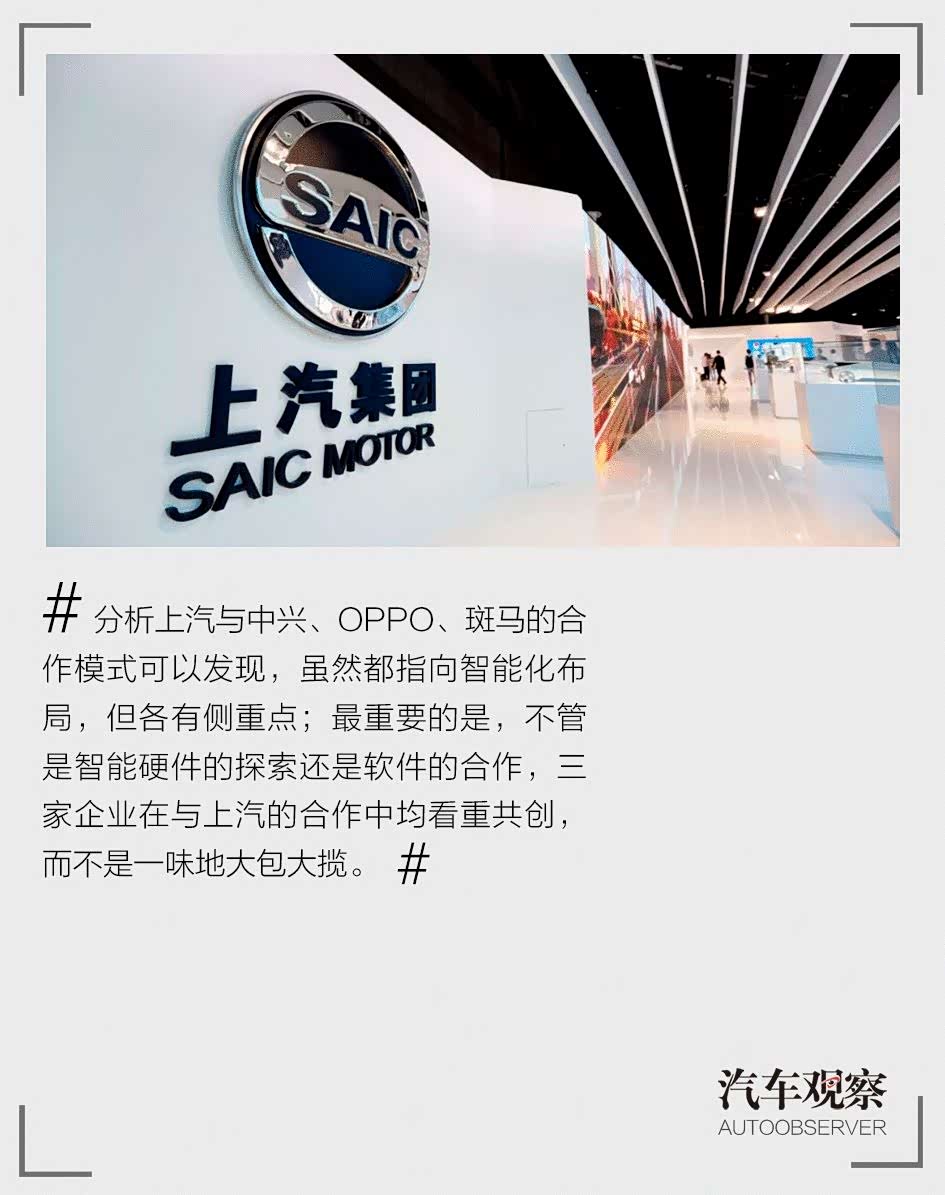 分析上汽与中兴、OPPO、斑马的合作模式可以发现,虽然都指向智能化布局,但各有侧重点;最重要的是,不管是智能硬件的探索还是软件的合作,三家企业在与上汽集团的合作中都是发挥所长、侧重共创,而不是一味地大包大揽。这便是上汽选择中兴、OPPO、斑马,而拒绝华为的根本原因。