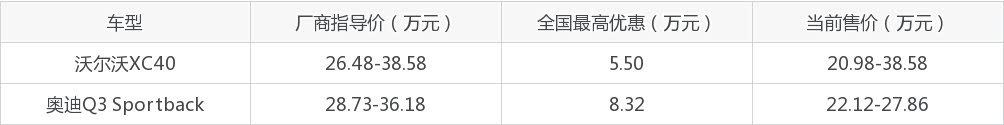 沃尔沃XC40和奥迪Q3 Sportback全系优惠对比