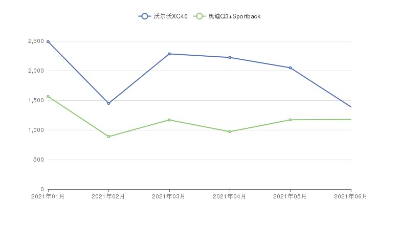 沃尔沃XC40和奥迪Q3 Sportback全系销量对比