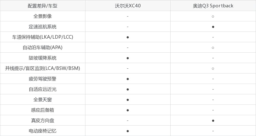 沃尔沃XC40和奥迪Q3 Sportback配置对比