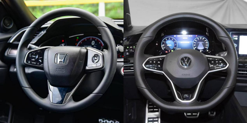 其实两款车型配置都挺LOW的,思域HATCHBACK居然是用的是织物座椅、塑料方向盘。相比之下高尔夫会好一些,有全液晶仪表、疲劳驾驶提醒、后排出风口和车内氛围灯。