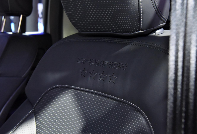 内饰方面,新车与普通版在细节上也有很大差异,增加了大量环塔冠军版特有的元素。最明显的就是副驾驶手把上镶嵌了的冠军字样的铭牌,还有着专属的限量版编号。前排座椅也增加了“CHAMPION”刺绣。