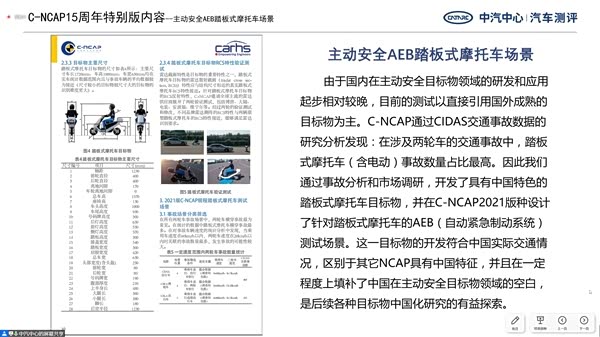 此次C-NCAP对国内路况的特殊性,还增加了极具特色的主动安全AEB踏板式摩托车测试场景,以及全球率先引入行人保护先进腿型设备等。