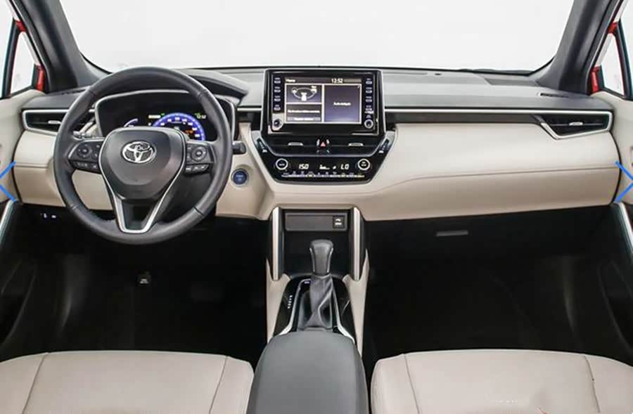 车内的话,倒是和自身的名字比较相符,基本延续了卡罗拉的设计风格,配有7英寸液晶仪表和8英寸悬浮式中控屏,下方为一些常用功能按键,整体布局以实用规整为主。