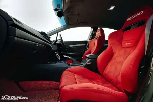 图:座椅十分漂亮,这款RECARO就是三菱EVO的同款SPJ,虽然已经是老产物,但是设计上一点都不过时。